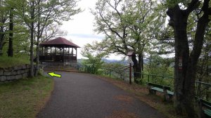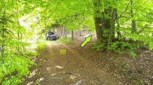 Dále se běží mezi opuštěnými základy nedokončené lanovky na Tři kříže (zde je značka hůře vidět, viz foto) a pokračuje se po vrstevnicovce až do sedla pod Ottovu výšinu. Následuje 300 metrů seběhu a záludná křižovatka, kde je potřeba ohlídat si žlutou značku, která hlavní cestu s červenou značkou jen překříží (viz foto). Poté pěšinka vyústí na širokou cestu a za pár metrů se odbočí doleva na finální stoupání na Goethovku po Stezce plné strašidel. Jakmile se dostanete na vrchol, měli byste vyhlídku oběhnout zprava.